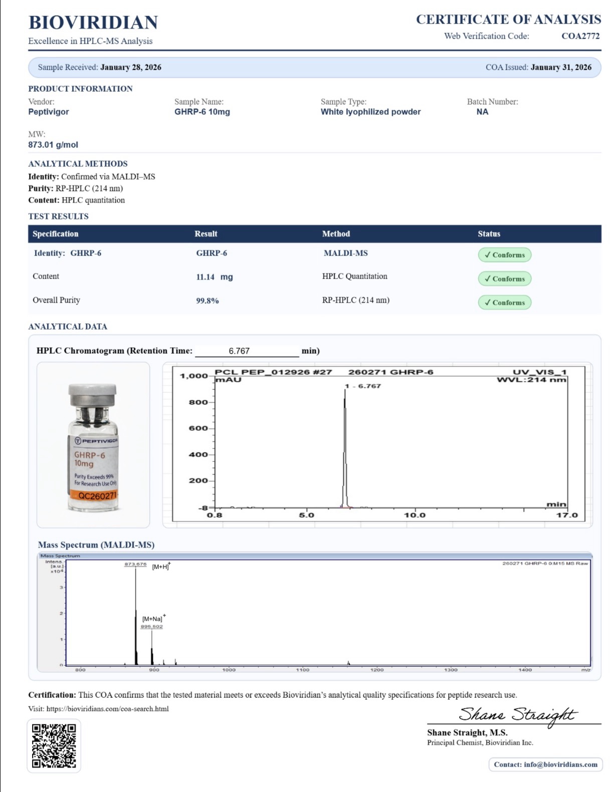 Usage in Research: GHRP-6 is intended for laboratory research purposes only. It is not approved for human consumption. Researchers should follow appropriate safety protocols when handling this peptide.
